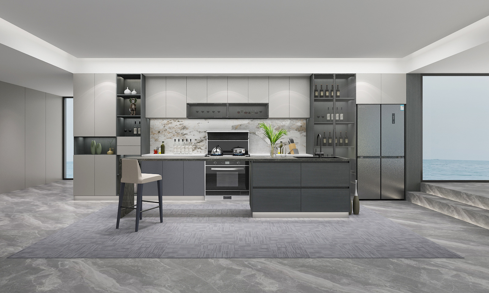 對儲納、洗滌、備餐、烹飪四大系統升級,融入智慧影音系統、凈水系統、智能照明系統等功能;對原本功能單一櫥柜、電器、用具進行優化處理和組合,從而達到智慧廚房一體化。
